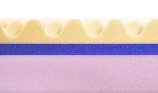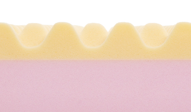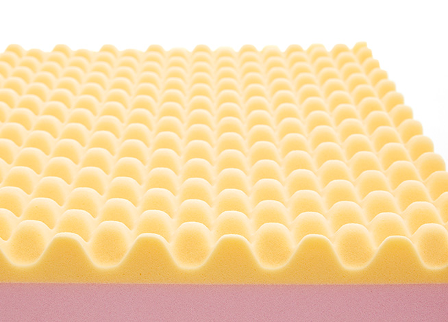 凹凸の形状を持つウレタンフォームが、体を点で支えて体圧を分散。